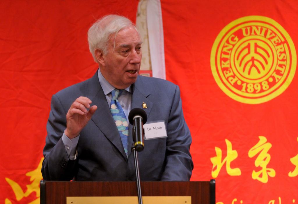 马里兰大学前校长Mote教授在致词中回忆了自己从1998年起,在许智宏校长和周其凤校长在任期间促进了北京大学和马里兰大学密切交流的经历,并希望马里兰大学和北京大学能够发展出更加密切的关系。